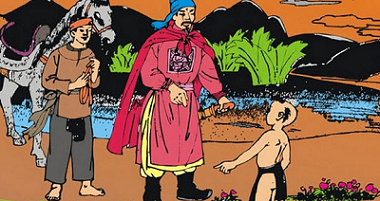 – Chả mấy khi được lộc vua ban, bố cứ thưa với làng làm thịt hai trâu và đồ hai thúng gạo nếp để mọi người ăn một bữa cho sướng miệng. Còn một trâu và một thúng gạo, ta sẽ xin làng làm phí tổn cho bố con ta trẩy kinh lo việc đó.